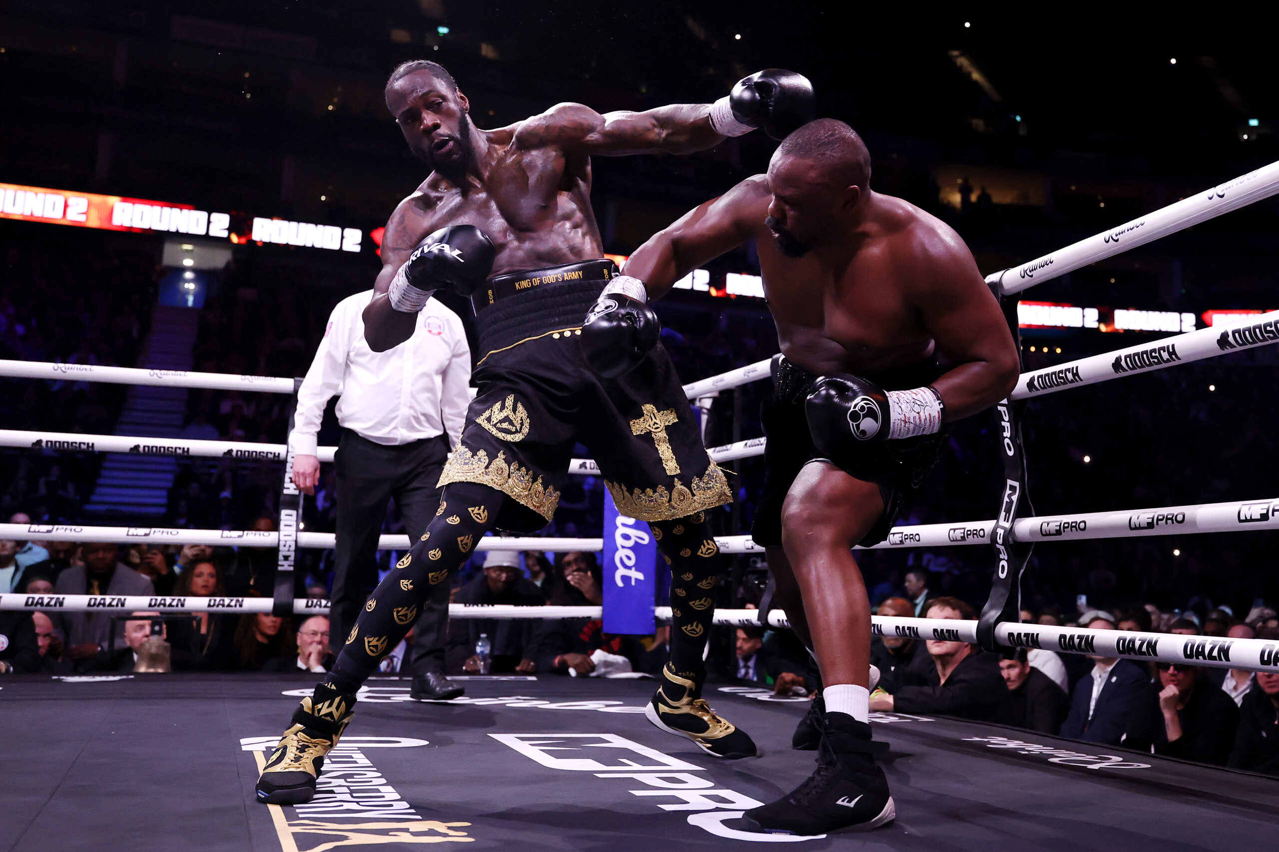 LONDON, ENGLAND – APRIL 04: Derek Chisora punches Deontay Wilder during the Heavyweight fight between Derek Chisora and Deontay Wilder…