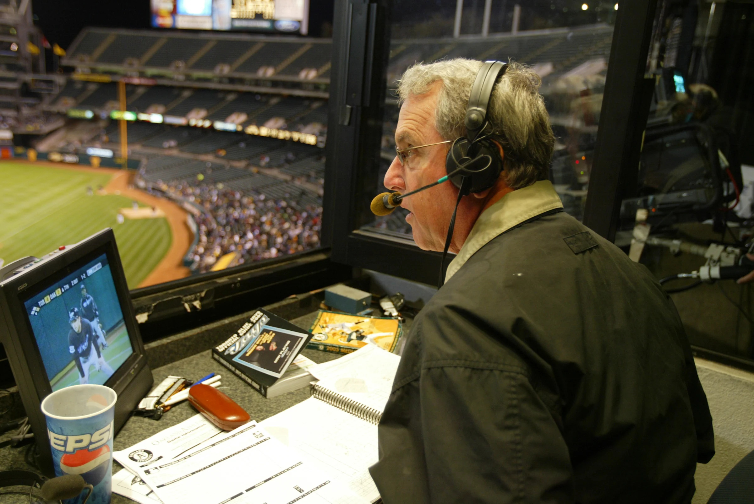 OAKLAND, CA – APRIL 12: Team Announcer Ken Korach of the Oakland Athletics during the game against the Toronto Blue…