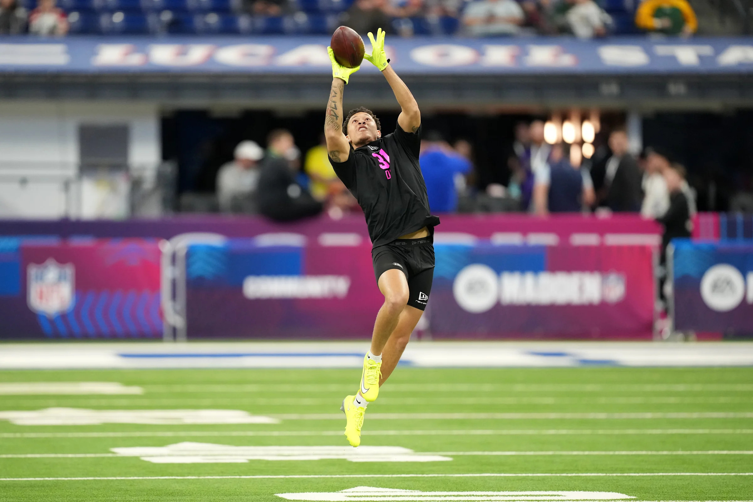 Feb 27, 2026; Indianapolis, IN, USA; Clemson defensive back Avieon Terrell (DB31) during the NFL Scouting Combine at Lucas Oil…